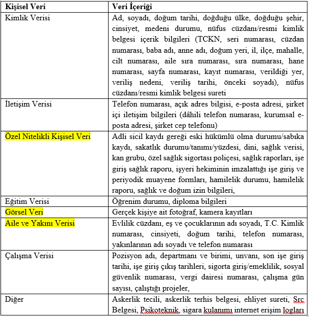 Tarafımızca İşlemeye Konu Olabilecek Kişisel Verileriniz Aşağıdaki Gibidir: