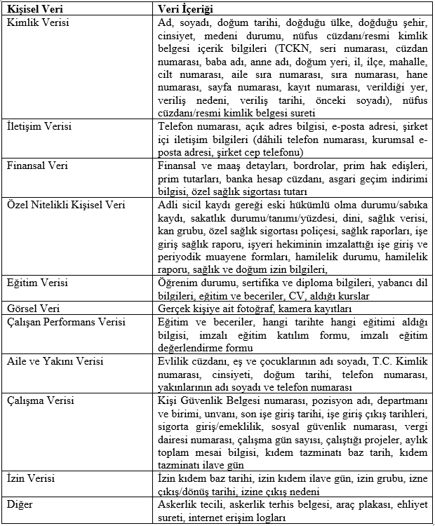 Güvenliğiniz ve Şirketimizin yasalar karşısındaki yükümlülüklerini ifa etmesi amacıyla kişisel verileriniz, İş Kanunu, İşçi Sağlığı ve İş Güvenliği Kanunu, Sosyal Sigortalar ve Genel Sağlık Sigortası Kanunu, 6698 Sayılı Kişisel Verilerin Korunması Kanunu, Kimlik Bildirme Kanunu Kişisel Verileri Koruma Kurumu, Maliye Bakanlığı, Çalışma ve Sosyal Güvenlik Bakanlığı, Türkiye İş Kurumu (İş-Kur), şirketten bilgi almaya yetkili kamu kurum ve kuruluşları ve özel hukuk tüzel kişileri, şirket ticari faaliyetlerini yürütürken şirketin emir ve talimatlarına uygun olarak sözleşme temelli olarak şirkete hizmet sunan tedarikçi gibi kamu ve özel hukuk tüzel kişileri ve fakat bununla sınırlı olmamak üzere sair mevzuat hükümleri izin verdiği ve gerektirdiği ölçüde ilgili kurum veya kuruluşlar ile paylaşılabilir. Örneğin; çalışanların kişisel verilerinin işçi ve işveren primlerinin ödenebilmesi amacı ile Sosyal Güvenlik Kurumu ile paylaşılmaktadır.
