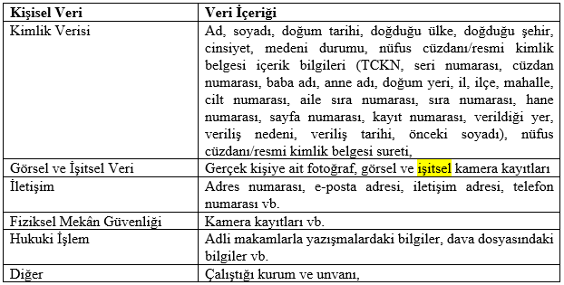 Tarafımızca İşlemeye Konu Olabilecek Kişisel Verileriniz Aşağıdaki Gibidir: